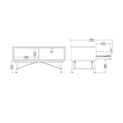 Cu dimensiuni de 48x102 cm, oferă spațiu de depozitare generos. Suprafața cu aspect de lemn de culoare deschisă și picioarele înclinate conectate prin montanți metalici conferă mesei un aspect unic. Raftul deschis și sertarul spațios oferă spațiu amplu de depozitare pentru a păstra lucrurile în ordine.