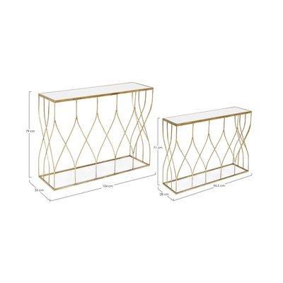 - 2 buc., cu blat din sticlă, aurii, 33x104 cm, înălțime 79 cm