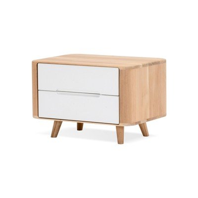 Noptieră Ena- cu sistem push to open , albă/în culoare naturală, 60x42 cm, înălțime 40 cm