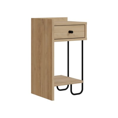 Noptieră în culoare naturală cu rafturi cu aspect de lemn de stejar Mercure – Marckeric