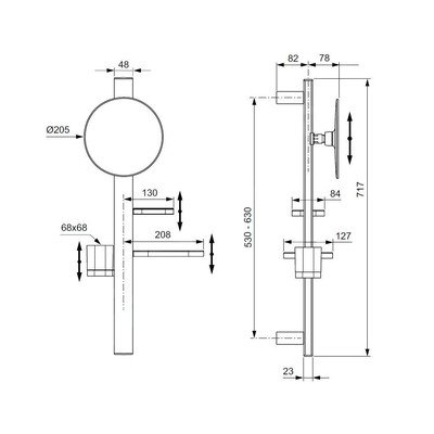 Oglindă ALU+- de perete, cu raft/cu cuier, ø 20,5 cm
