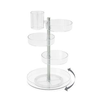 Unul dintre ele este acest organizator. Datorită compartimentelor sale reglabile pe înălțime, care, de asemenea, se rotesc la 360°, acesta permite accesul ușor la toate articolele depozitate.