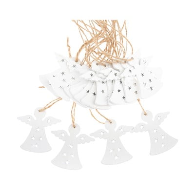 Adorabilii îngerași albi din lemn, cu sfoară de iută, se potrivesc de minune în bradul nostru neconvențional de Crăciun. Exact ce căutam.