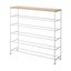 Pantofarul Tower de la brandul YAMAZAKI este o soluție practică pentru organizarea holului tău. Acest suport metalic cu cinci rafturi are roți cu opritoare, ceea ce facilitează mutarea sa și, în același timp, asigură stabilitatea atunci când este așezat. În partea superioară se află o poliță din furnir natural, ideală pentru depozitarea obiectelor mici. Pe acest suport se pot depozita până la 20 de perechi de pantofi, în funcție de mărimea și forma acestora. Pentru o funcționalitate sporită, pe laterale sunt amplasate două cârlige, perfecte pentru agățarea unui încălțător sau a unei umbrele. Polița superioară are o capacitate de încărcare de 2 kg, fiecare nivel suportă 3 kg, iar cârligele au o capacitate de 500 g.