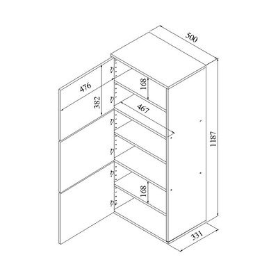 - cu aspect de lemn de stejarDin PAL (placă aglomerată de lemn)Finisaj suprafață: melaminăNegru/în culoare naturalăLățime 50 cmÎnălțime 119 cmAdâncime 33 cm