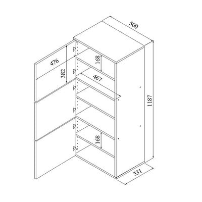 - din PAL (placă aglomerată de lemn)Finisaj suprafață: melaminăÎn culoare naturalăNumăr perechi încălțăminte 18 Lățime 50 cmÎnălțime 119 cmAdâncime 33 cm
