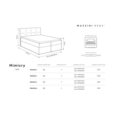 Setul include: o saltea mediu - fermă (3/5) cu 838 arcuri; spații de depozitare cu deschidere laterală și o protecție de saltea cu o grosime de 7 cm.