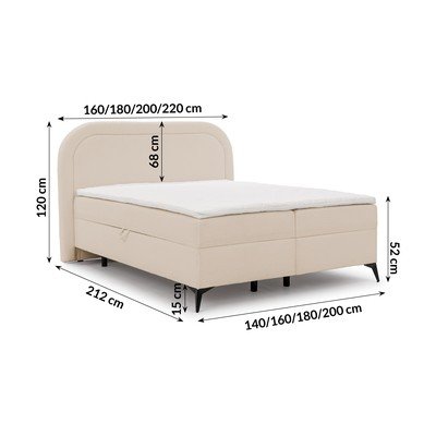- 180x200 cm, cu spațiu de depozitare, tapițat, cu saltea/cu topper, cu tapițerie din țesătură bouclé, bej
