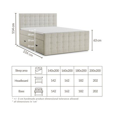 - 200x200 cm, cu spațiu de depozitare, tapițat, cu saltea/cu topper, cu tapițerie din catifea reiată , crem