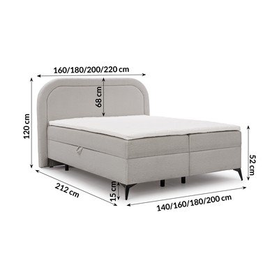 - 200x200 cm, cu spațiu de depozitare, tapițat, cu saltea/cu topper, cu tapițerie din țesătură bouclé, gri deschis