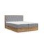 Pat boxspring Asahi- 180x200 cm, cu spațiu de depozitare, tapițat/din MDF, cu saltea/cu topper, cu tapițerie din chenille, ușor de asamblat, gri/în culoare naturală