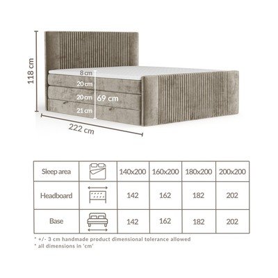 Bine de știut: Având în vedere caracterul handmade al produsului și specificul țesăturilor de tapițerie, marja de eroare a dimensiunilor este de +/- 3 cm.