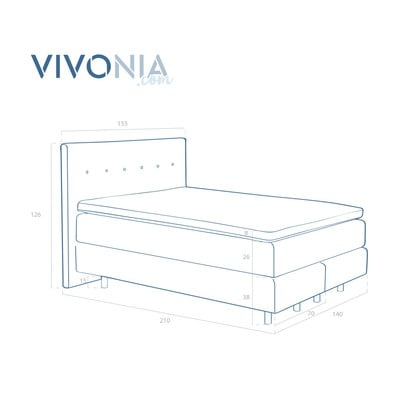 Patul box spring Vivonita Lando sosește la dvs. împreună cu tăblia tapițată, grătarul și saltele care au 5 zone de confort din materiale diferite. Sub stratul superior al stratului de spumă de latex poate fi găsit un strat de spumă cu memorie. Sub ea există două straturi separate de arcuri, o saltea cu spumă și în final grătarul.