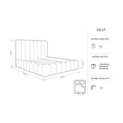Descoperiți frumusețea și eleganța patului Kelp de la Micadoni Home.Moale și plăcută la atingere, țesătura este foarte rezistentă la abraziune, reducând riscul de deteriorare. Datorită umpluturii din spumă, tăblia este confortabilă.Marginea sa superioară are un contur ușor ondulat, marcat de cusături verticale. Sub lamele veți găsi, de asemenea, un spațiu de depozitare pentru lenjeria dvs. de pat. Patul Kelp va crea o atmosferă caldă și confortabilă în dormitorul dumneavoastră. Se potrivește cel mai bine cu interioarele în stil glamour și modern.