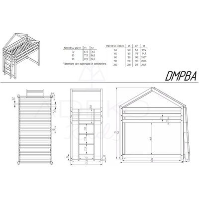 Pat pentru copii DMPBA- 80x200 cm, de tip casă/înalt, cu somieră, din lemn de pin, finisaj suprafață: netratat/finisaj suprafață: șlefuit, în culoare naturală