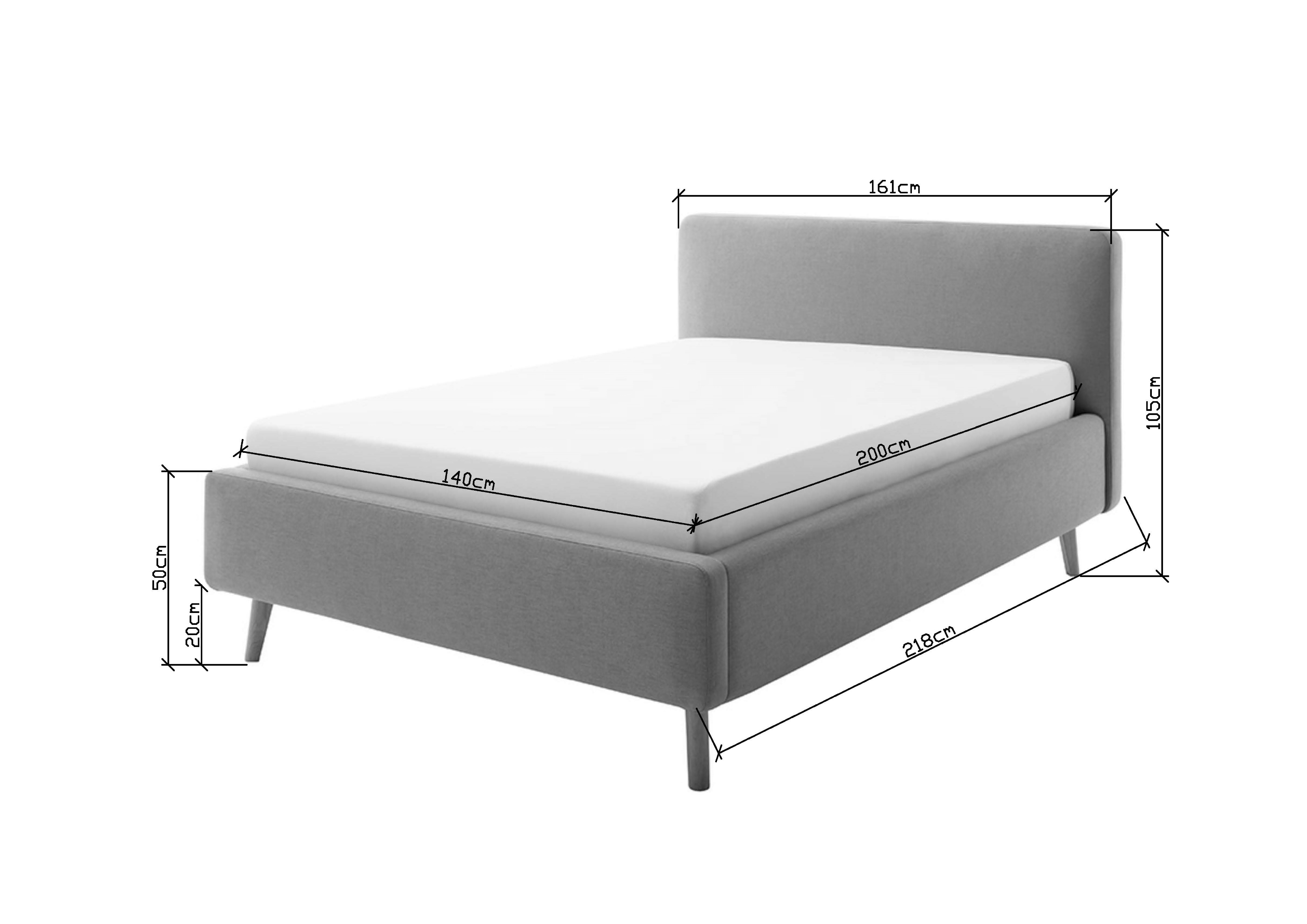 Pat matrimonial gri tapițat cu spațiu de depozitare cu somieră 140x200 cm Mattis – Meise Möbel