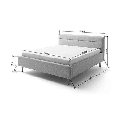Descoperiă farmecul paturilor tapițate de la Meise Möbel. La prima vedere, îți va atrage atenția designul picioarelor subțiri, ușor teșite din lemn de stejar și al tăbliei matlasate. Patul Lotty este echipat cu o somieră cu lamele, sub care vei găsi un spațiu de depozitare pe care îl poți folosi pentru pături suplimentare sau, de exemplu, pentru lenjeria de pat.