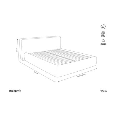 Pat matrimonial bej tapițat cu spațiu de depozitare cu somieră 160x200 cm Kiana – Makamii