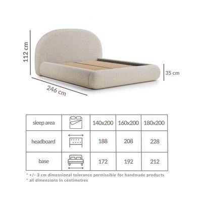 - 140x200 cm, cu spațiu de depozitare, cu somieră, tapițat, cu tapițerie din țesătură bouclé, crem