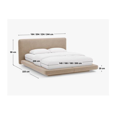 - 140x200 cm, tapițat, cu tapițerie din catifea, fildeș