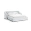 - 140x200 cm, cu spațiu de depozitare, cu somieră, tapițat, cu tapițerie din chenille, gri deschis