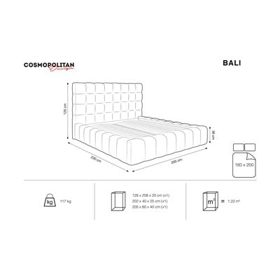 Pat matrimonial bej tapițat cu spațiu de depozitare și somieră 180x200 cm Bali – Cosmopolitan Design