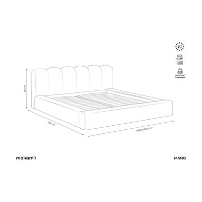 Pat matrimonial bej tapițat cu spațiu de depozitare cu somieră 160x200 cm Mano – Makamii