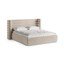 Pat matrimonial bej tapițat cu spațiu de depozitare cu somieră 200x200 cm Mount – Micadoni