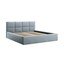 Pat matrimonial albastru deschis tapițat din catifea cu spațiu de depozitare cu somieră 140x200 cm Hiko – Makamii