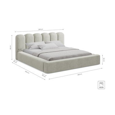 Pat matrimonial crem tapițat cu spațiu de depozitare cu somieră 160x200 cm Mano – Makamii