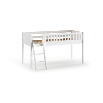 Pat pentru copii SCOTT- 90x200 cm, înalt, cu spațiu de depozitare, cu somieră, din lemn de pin, finisaj suprafață: email, alb