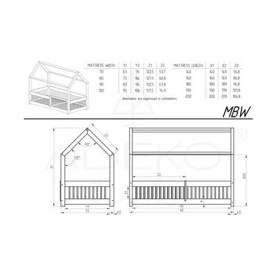 - 80x190 cm, de tip casă, cu somieră, din lemn de pin, finisaj suprafață: netratat/finisaj suprafață: șlefuit, în culoare naturală