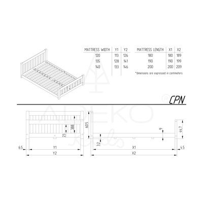 - 90x200 cm, cu somieră, din lemn de pin, finisaj suprafață: netratat/finisaj suprafață: șlefuit, în culoare naturală