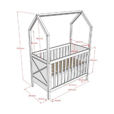 - 60x120 cm, cu înălțime reglabilă, cu somieră, din lemn de pin, finisaj suprafață: email, alb