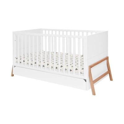 Pătuț Lotta- cu spațiu de depozitare, cu somieră, finisaj suprafață: email, alb/maro