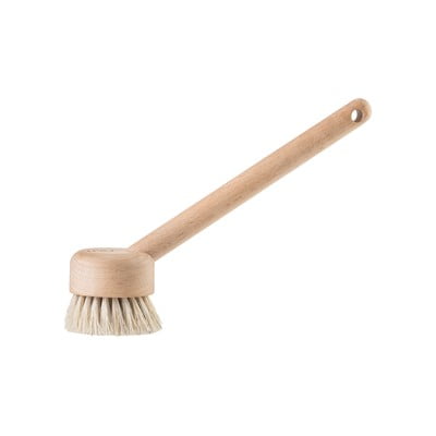 Această perie de spălat vase de la Zone este fabricată din lemn de fag certificat FSC™ tratat cu ceară de albine. Împreună cu mânerul rotund, aceasta asigură o manevrare și o prindere confortabilă. O puteți, de asemenea, agăța oriunde.