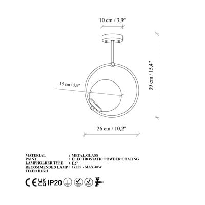 - cu abajur din sticlă, din metal, albă/alămie, 39x26 cm, înălțime 15 cm