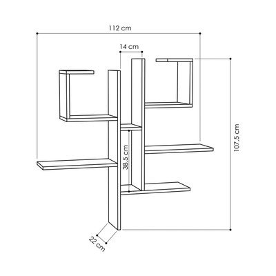 Bibliotecă de perete- galbenă/gri, lățime 22 cm, înălțime 107,5 cm