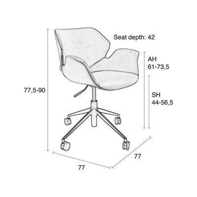 Scaun de birou Nikki- tapițat, cu roți /cu înălțime ajustabilă/cu cotiere, maro, capacitate de încărcare 100 kg, înălțime șezut 44-56,5 cm
