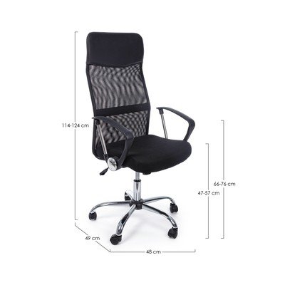 - tapițat, cu roți /cu înălțime ajustabilă/cu cotiere, negru, capacitate de încărcare 110 kg, înălțime șezut 57-57 cm
