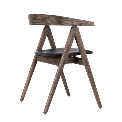 Scaun de dining Ava- cu cotiere, din lemn de stejar, cu tapițerie din piele, negru/maro