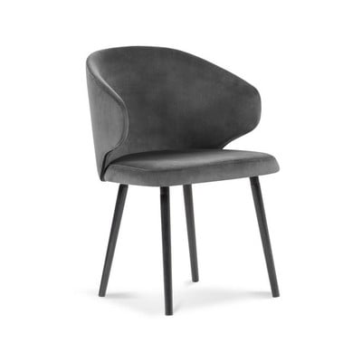 Scaun de sufragerie Nemesis- cu cotiere, tapițat, cu tapițerie din catifea, gri închis