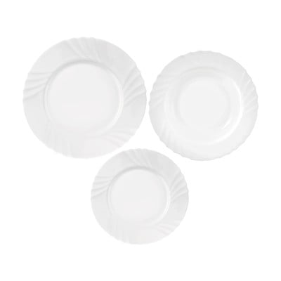 Acest set de sufragerie din sticlă opală este format din următoarele feluri de mâncare: