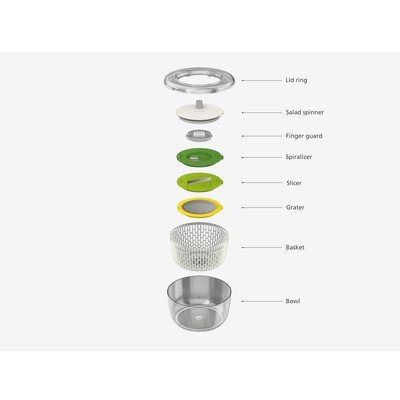 Set compact pentru prepararea salatelor, legumelor murate, etc. Ușor de întreținut, foarte portabil, răzătoarele sunt foarte ascuțite (atenție la asta...