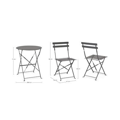 Setul de dining Austin de la Bizzotto este fabricat din oțel și este perfect pentru a sta în grădină, pe balcon sau pe terasă. Setul este format dintr-o masă rotundă și două scaune. Designul său pliabil îl face ușor de transportat și depozitat.