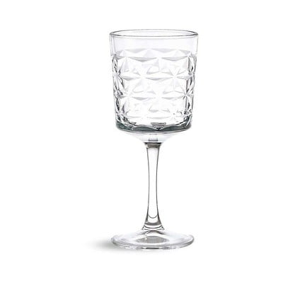 Paharul de vin de la Hermia impresionează cu aspectul său modern. Este fabricat din sticlă transparentă, iar suprafața sa este decorată cu un model fațetat distinctiv care creează un joc interesant de lumină și conferă paharului un aspect geometric.