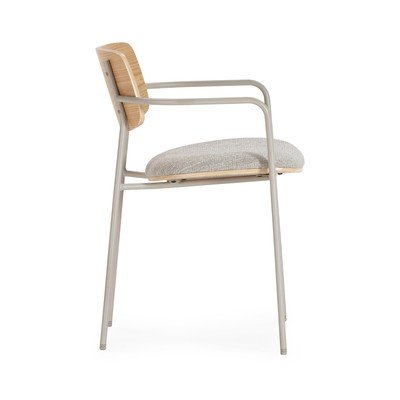 - 2 buc., cu cotiere, tapițate, gri-deschis/în culoare naturală
