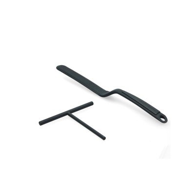 A doua este o spatulă lungă cu o îndoitură practică, care facilitează întoarcerea și servirea clătitelor. Ustensilele sunt fabricate din silicon.