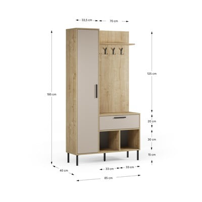 Set pentru hol Heidy- cu aspect de lemn de stejar, din PAL (placă aglomerată de lemn), finisaj suprafață: melamină, crem/în culoare naturală, lățime 108 cm, înălțime 195 cm, adâncime 35 cm