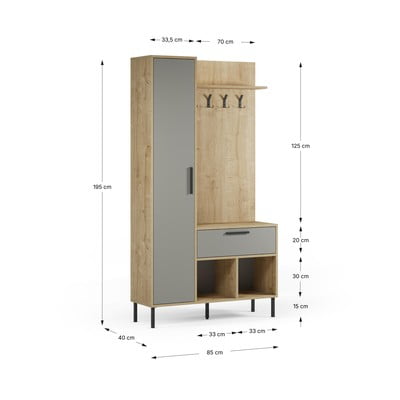 Set pentru hol Heidy- cu aspect de lemn de stejar, din PAL (placă aglomerată de lemn), finisaj suprafață: melamină, verde/în culoare naturală, lățime 108 cm, înălțime 195 cm, adâncime 35 cm